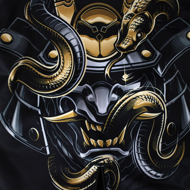 Spodenki MMA Oni Samurai z autorską grafiką inspirowaną japońskimi maskami to świetny wybór na treningi BJJ, MMA. Sprawdzą się również na siłowni i podczas innych aktywności fizycznych. Są wygodne, wytrzymałe i świetnie odprowadzają pot. Do tego zadbaliśmy o unikatowy, nieścieralny nadruk, który przetrwa lata treningów.Cechy charakterystyczne: