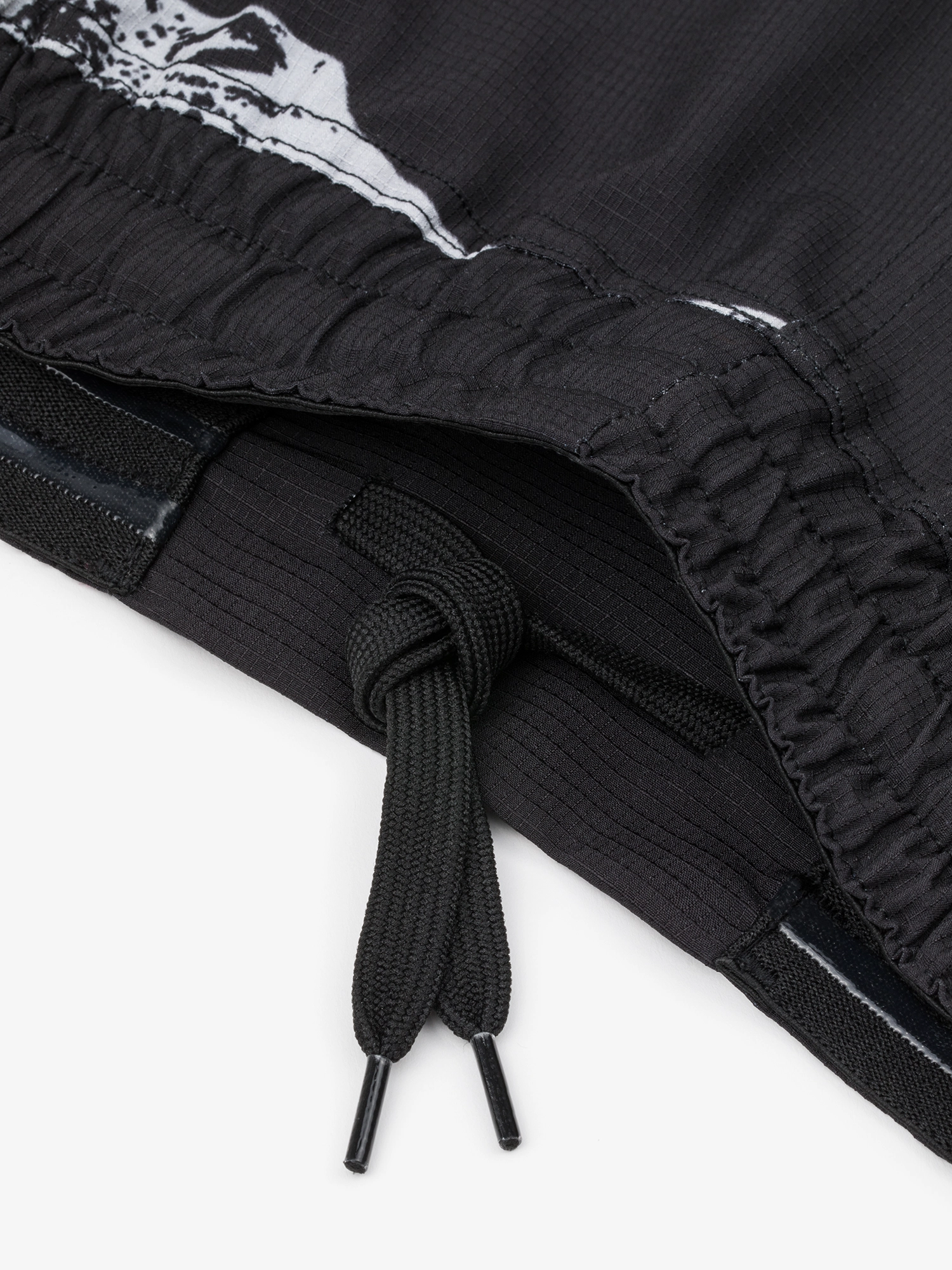 Elastyczny pas w połączeniu ze sznurkiem umożliwia precyzyjne dopasowanie do sylwetki, a żelowe aplikacje od wewnętrznej strony zapobiegają przesuwaniu się spodenek w trakcie ruchu. Boczne rozcięcia zwiększają zakres mobilności, co docenisz szczególnie podczas kopnięć, przysiadów czy pracy w parterze.