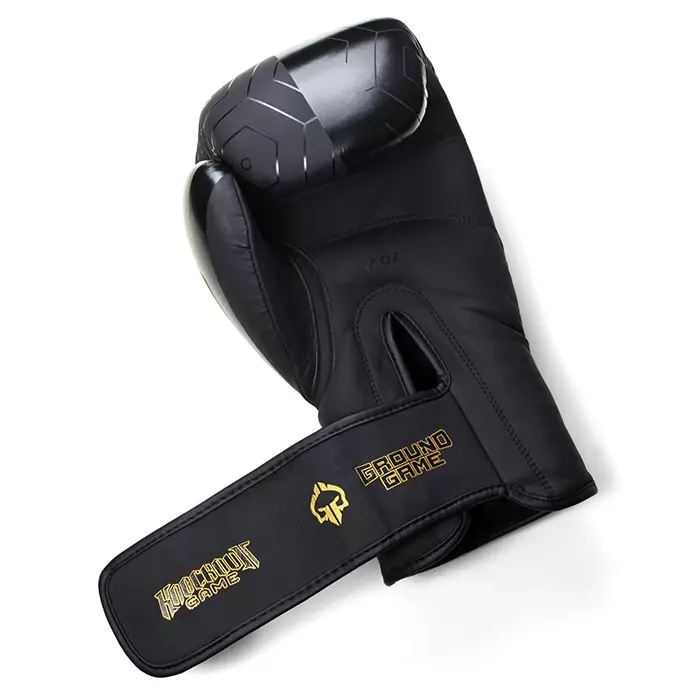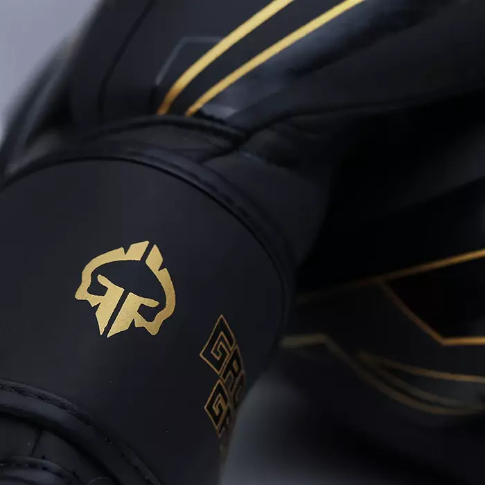 Eleganckie rękawice bokserskie Equinox ze złotymi akcentami zostały wykonane z najwyższej jakości skóry bydlęcej odpornej na pęknięcia.